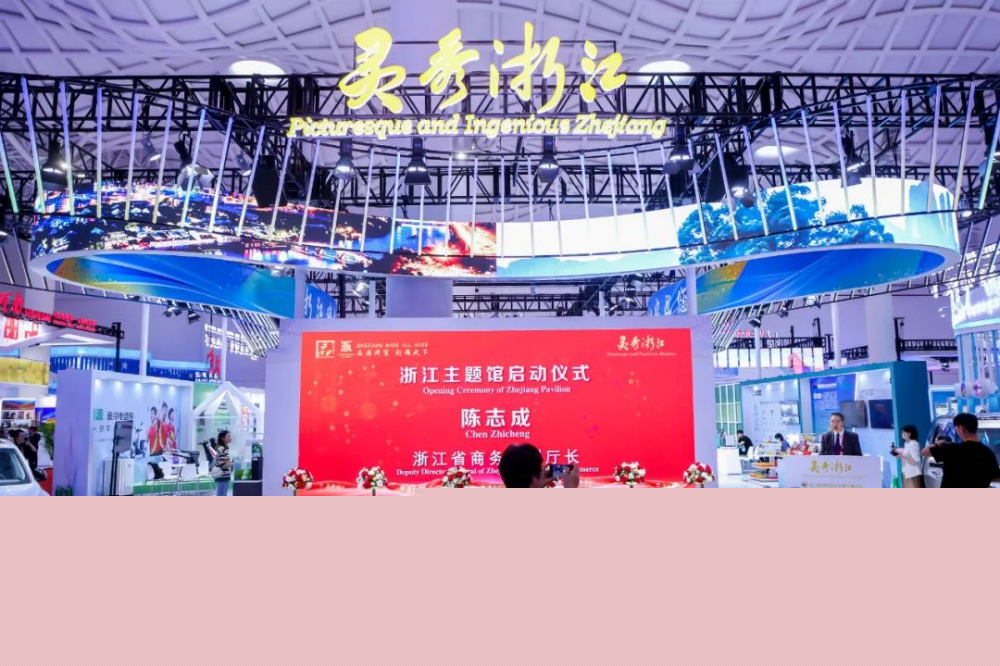 開幕式當天下午,商務部副部長盛秋平在浙江省商務廳副廳長陳志成等領導的陪同下,蒞臨浙江館參觀。